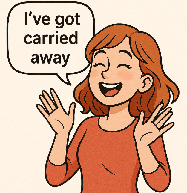 "Carried away" 라는 표현에 대해서 알아보자. 주로 동사 Get을 써서 "get carried away" 로 사용 된다.