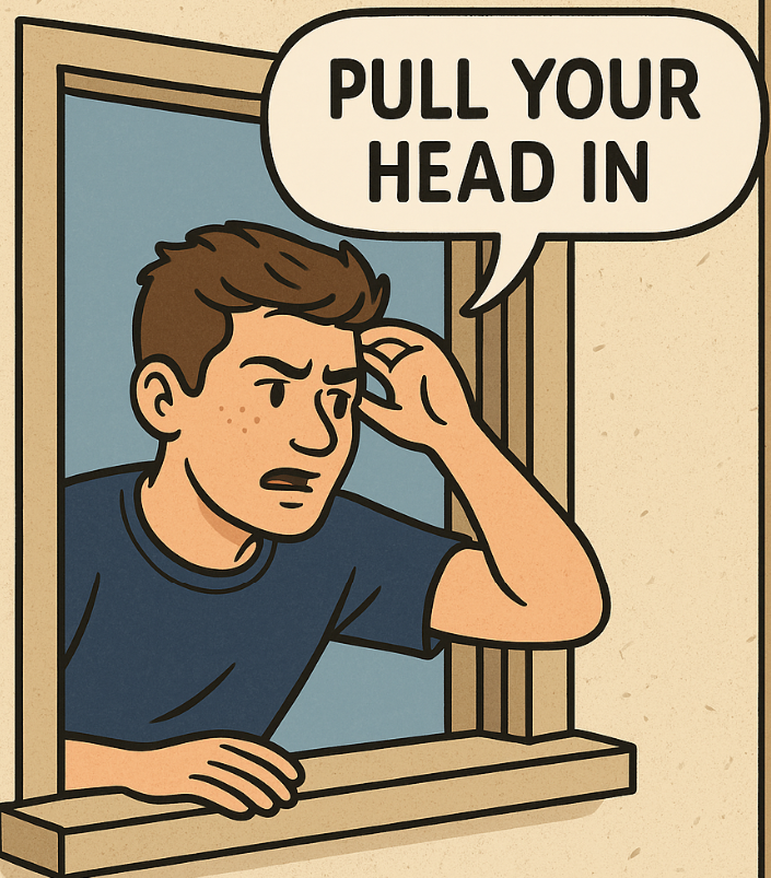 Pull your head in는 말 그대로는 “머리를 집어넣어라”는 뜻이지만 "자중해, 오지랖 떨지 마, 조용히 해" 라는 의미로, 호주에서 일상 대화에서 자주 쓰이는 구어체 표현이다.