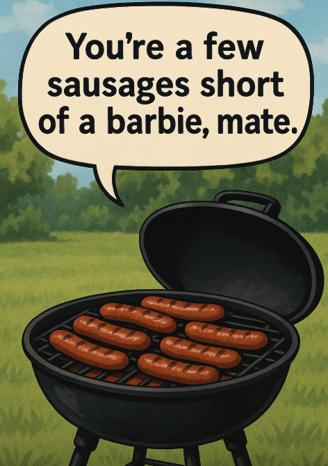 호주식 슬랭 중에서도 유쾌하고 장난스러운 표현 중에You're a few sausages short of a barbie가 있다.