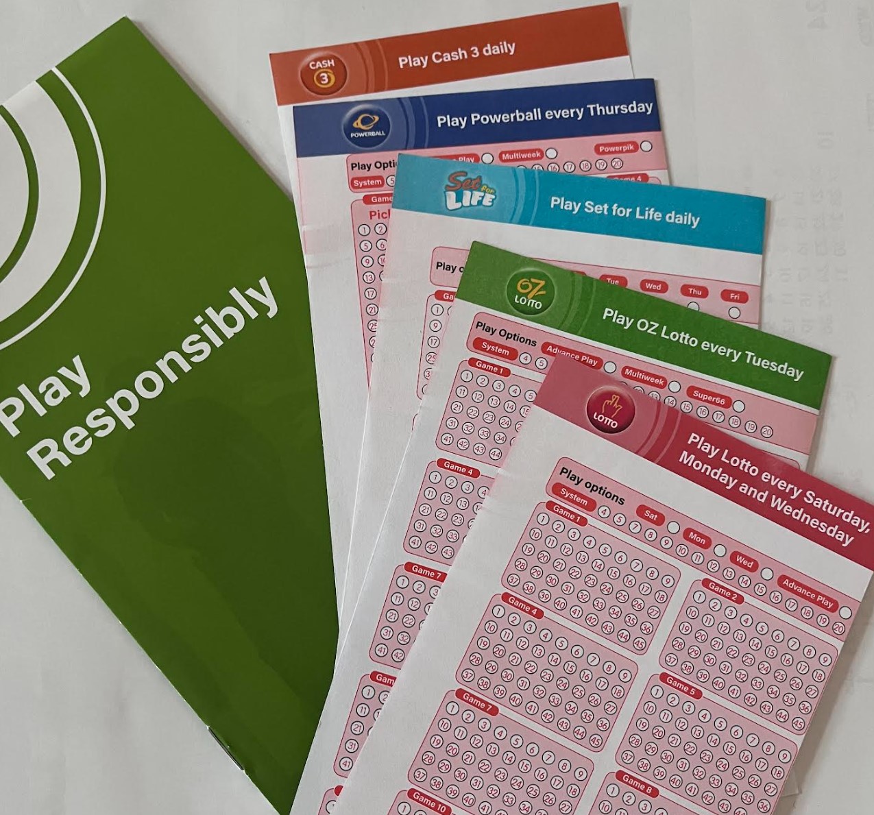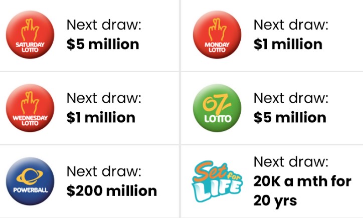 화요일 로또를 OZ Lotto라고 하고 목요일 로또를 Powerball이라고 한다. 다른 요일 로또는(월요일, 수요일, 토요일) 특별히 따로 부르는 명칭이 없다. 그리고 Set for Life라는 복권이 있는데 이 복권은 매일 추첨한다. (금요일, 일요일포함) 1등 당첨(Division 1 winner)이 되면 20년간 매달 20k(현재환율로 천칠백만원 정도)를 받을 수 있다.